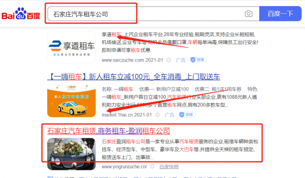 石家莊*潤汽車租賃有限公司百度關鍵詞排名營銷+精準獲客