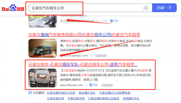 我們公司與河北途*汽車服務有限公司合作中,對這個公司所經營的汽車租車這個行業提供了百度關鍵詞排名,與該公司的合作,更多的客戶讓我們公司為其提供百度快照排名,通過每一次合作,我們公司不斷完善自己,同時希望合作伙伴在經營的路上越來越好。