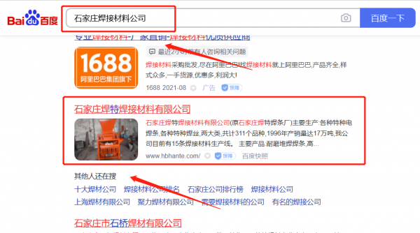石家莊*特焊接材料有限公司選用我司企業焊接材料行業的網站優化產品,其SEO關鍵詞有焊接材料。覆蓋國內幾大主流搜搜引擎,占領電腦端、手機端,24小時快速獲取關鍵詞排名,搶奪流量。石家莊*特焊接材料有限公司成立于1996年,是經石家莊市市場監督管理局審核的有資質的公司,其統一社會信用代碼:9113010**70811415D。公司地址:河北省石家莊新華區小安舍村昌北路工業區3號院。