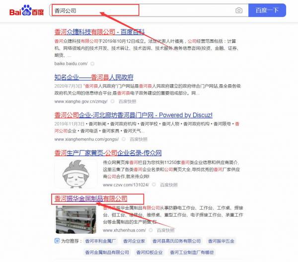 香河縣振*金屬制品有限公司網站優化排名效果展示