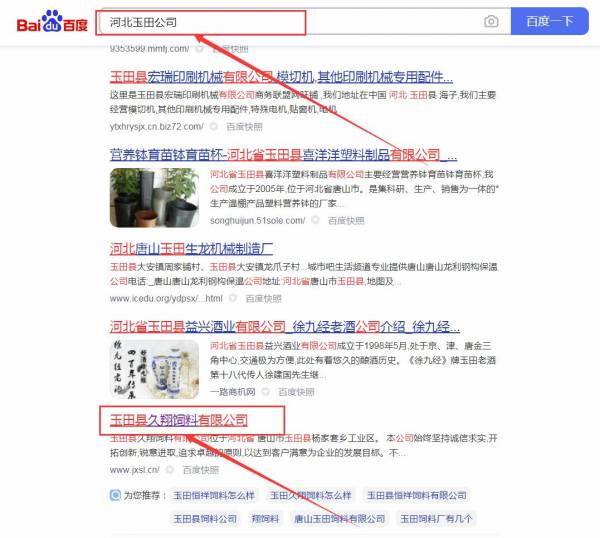 玉田縣久*飼料有限公司網站優化排名效果展示