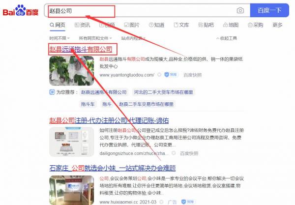 趙縣遠*拖斗有限公司網站排名最快上詞效果展示