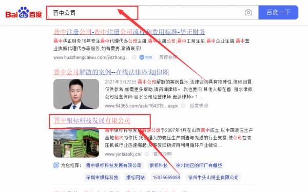 晉中銀*科技發展有限公司網站優化排名效果展示
