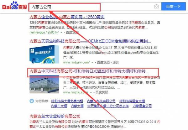 內蒙古中天科技有限公司和我公司簽訂百度快照排名項目