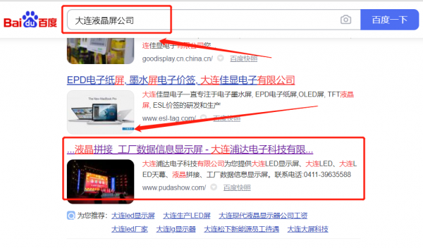 大連浦*電子科技有限公司百度霸屏最快上詞效果展示