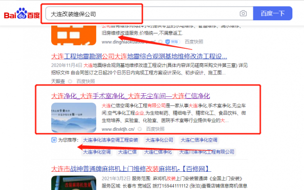 大連仁*空調凈化工程有限公司網絡推廣最快上詞效果展示