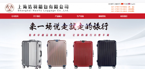 上海浩*箱包有限公司網(wǎng)站建設(shè)制作設(shè)計(jì)案例欣賞