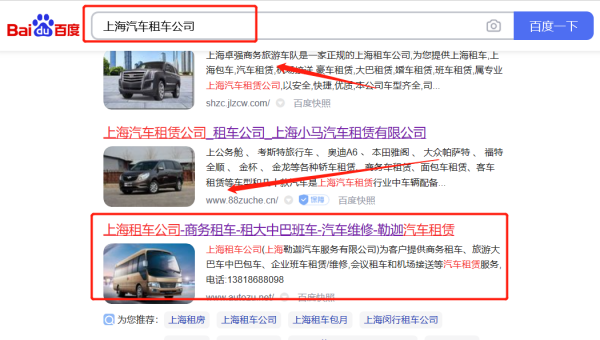 上海勒*汽車服務有限公司百度排名到首頁按天扣費