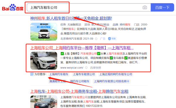 隆*汽車租賃(上海)有限公司百度排名到首頁無排名不收費