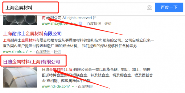日迪金屬材料(上海)有限公司選用我司企業金屬材料的網站優化產品,其SEO關鍵詞有金屬材料。快速優化系統火速推采用智能數據系統,效果一目了然,包括關鍵詞排名,消費,余額等,并通過大量的數據分析優化廣告效果。日迪金屬材料(上海)有限公司成立于2012年,是經上海市市場監督管理局審核的有資質的公司,其統一社會信用代碼:913101175886867001。公司地址:上海市松江區新浜鎮中心路327號105室。