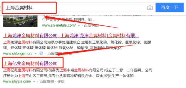 上海億兆金屬材料有限公司選用我司企業金屬材料的網站優化產品,其SEO關鍵詞有金屬材料。快速優化系統火速推采用智能數據系統,效果一目了然,包括關鍵詞排名,消費,余額等,并通過大量的數據分析優化廣告效果。上海億兆金屬材料有限公司成立于2012年,是經上海市市場監督管理局審核的有資質的公司,其統一社會信用代碼:91310113594736460H。公司地址:上海市寶山區雙城路803弄11號1602B-239室。
