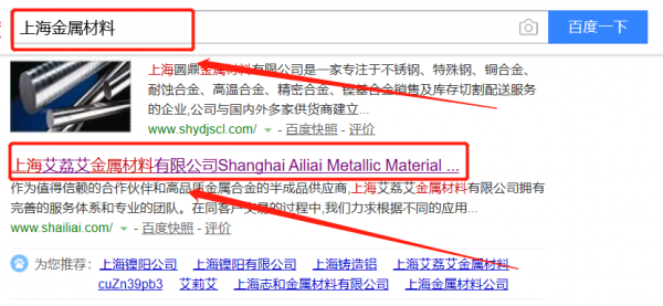 上海艾荔艾金屬材料有限公司選用我司企業金屬材料的網站優化產品,其SEO關鍵詞有金屬材料。快速優化系統火速推采用智能數據系統,效果一目了然,包括關鍵詞排名,消費,余額等,并通過大量的數據分析優化廣告效果。上海艾荔艾金屬材料有限公司成立于2011年,是經上海市市場監督管理局審核的有資質的公司,其統一社會信用代碼:91310117574106445X。公司地址:上海市松江區新浜鎮許村路692號。
