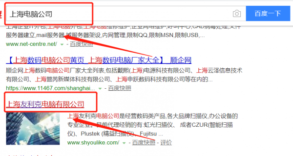我們公司與上海友利克電腦有限公司合作中,對這個公司所經(jīng)營的電腦這個行業(yè)提供了快速排名,與該公司的合作,更多的客戶讓我們公司為其提供快速排名,通過每一次合作,我們公司不斷完善自己,同時希望合作伙伴在經(jīng)營的路上越來越好。