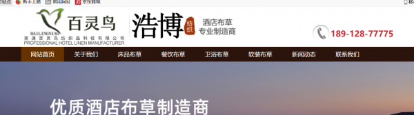 南通百靈鳥紡織品科技有限公司選用我司企業(yè)的網(wǎng)站設計優(yōu)化產(chǎn)品,其seo關(guān)鍵詞為床上用品,鎖定海外排名,覆蓋谷歌,雅虎,必應等海外主流搜索引擎,搶占海外市場, 網(wǎng)站打開速度快,用戶體驗好,風格多樣化,用戶互動性高,增強用戶黏著度     南通百靈鳥紡織品科技有限公司公司成立于2013年,是經(jīng)海門市市場監(jiān)督管理局審核的有資質(zhì)的公司,其統(tǒng)一社會信用代碼:913206840618748955。公司地址:海門市天補鎮(zhèn)廣豐村1組