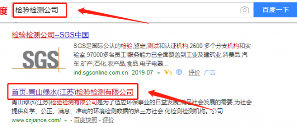 青山綠水檢驗檢測有限公司和我公司簽訂百度快照排名項目
