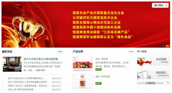 公司自成立以來,一直以“產(chǎn)業(yè)報(bào)國,行業(yè)領(lǐng)先”為目標(biāo),以“臻善臻美,普享幸福”為宗旨,先后獲得了農(nóng)業(yè)產(chǎn)業(yè)化國家重點(diǎn)龍頭企業(yè)、國家高新技術(shù)企業(yè)、全國少數(shù)民族特需商品定點(diǎn)生產(chǎn)企業(yè)、全國糧油加工 50 強(qiáng)企業(yè)、全國放心糧油加工示范企業(yè)、中國油菜籽加工 10 強(qiáng)企業(yè)、江蘇省農(nóng)業(yè)型科技企業(yè)等榮譽(yù)。“恒喜”商標(biāo)被國家認(rèn)定為中國馳名商標(biāo),恒喜牌菜籽油被認(rèn)定為江蘇名牌產(chǎn)品,被國家認(rèn)定為綠色食品,并榮獲綠色食品博覽會金獎。