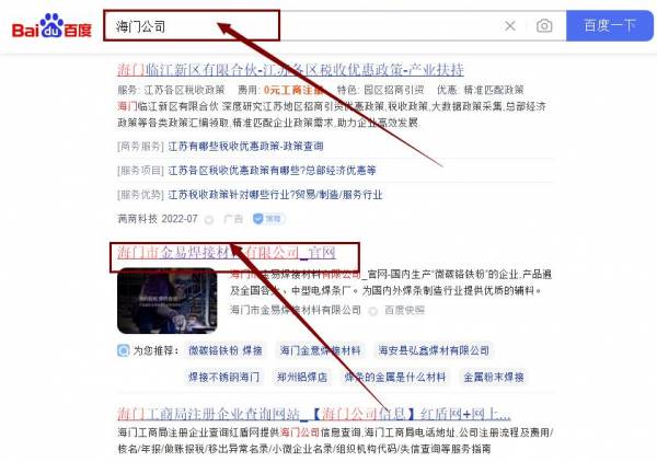 海門市金*焊接材料有限公司百度關鍵詞排名最快上詞效果展示