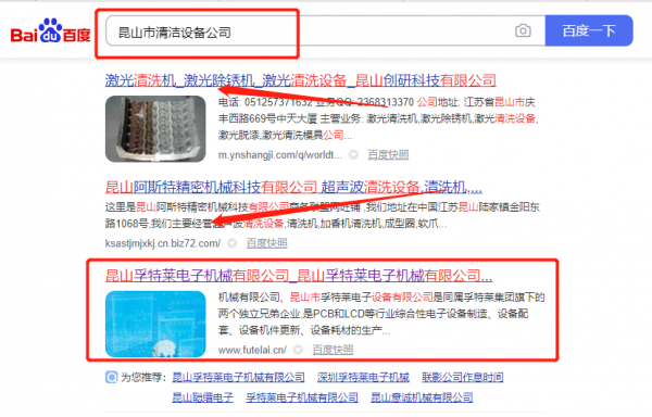 昆山*特萊電子機械有限公司選用我司企業清潔設備的網站優化產品,其SEO關鍵詞有清潔設備。專注于網站建設與排名優化,只做優化型網站,正規網站推廣優化,排名上升速度快,排名穩定,效果達標率超95%,換位思考,提升用戶體驗的同時為企業帶來效益。昆山*特萊電子機械有限公司成立于2011年,是經昆山市市場監督管理局審核的有資質的公司,其統一社會信用代碼:913205835**193505P。公司地址:江蘇省昆山市玉山鎮歡慶路2518號。