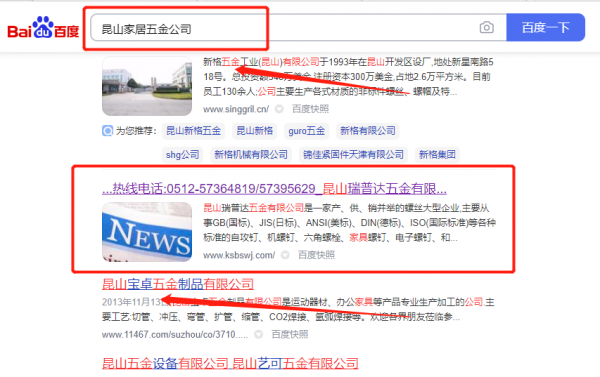 昆山瑞*達五金有限公司網站排名最快上詞效果展示