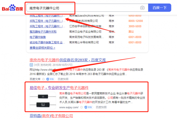 我們公司與南京易*電子有限公司合作中,對這個公司所經營的電子元器件這個行業提供了百度關鍵詞排名,與該公司的合作,更多的客戶讓我們公司為其提供百度快照排名,通過每一次合作,我們公司不斷完善自己,同時希望合作伙伴在經營的路上越來越好。