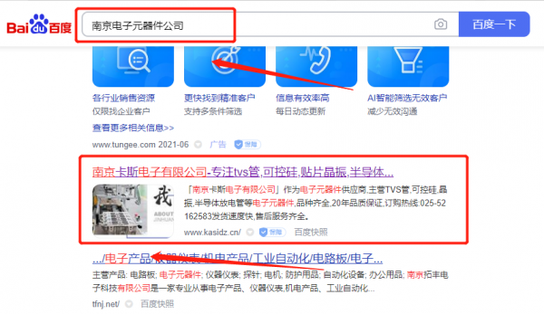 我們公司與南京卡*電子有限公司合作中,對(duì)這個(gè)公司所經(jīng)營(yíng)的電子元器件這個(gè)行業(yè)提供了百度關(guān)鍵詞排名,與該公司的合作,更多的客戶讓我們公司為其提供百度快照排名,通過每一次合作,我們公司不斷完善自己,同時(shí)希望合作伙伴在經(jīng)營(yíng)的路上越來越好。