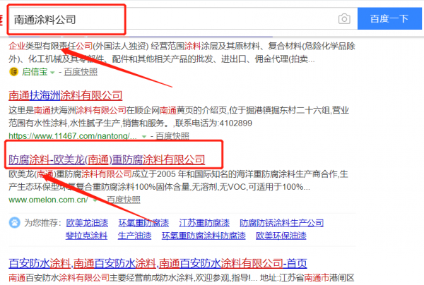 歐美龍(南通)重防腐涂料有限公司選用我司企業涂料的網站優化產品,其SEO關鍵詞有涂料。利用全新的SEO技術,在短時間內使關鍵詞占領搜索引擎首頁,為企業官網獲取更多更精準的流量。大數據分析,針對性定位,推廣,專屬定制最適合您,效果最全面的的推廣方案,更有效果保證!歐美龍(南通)重防腐涂料有限公司成立于2005年,是經南通市市場監督管理局審核的有資質的公司,其統一社會信用代碼: 91320621775443915U。公司地址:江蘇省南通市開發區創業外包服務中心D座3層。