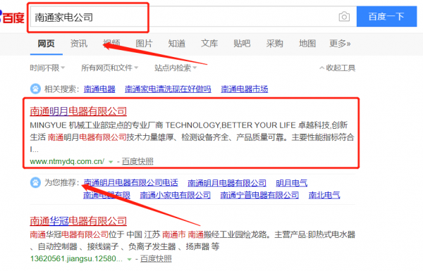 南通明月電器有限公司與本司簽約百度快照排名協議
