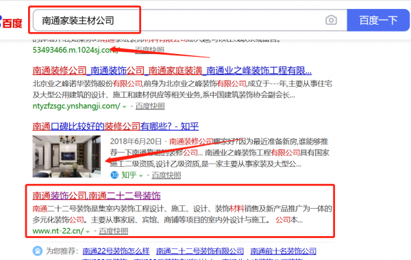 南通*十二號(hào)裝飾有限公司與我司簽下百度霸屏協(xié)議