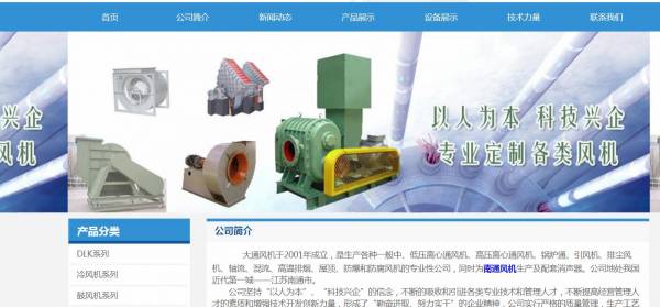 南通*通風機有限公司選用我司企業機械設備行業的網站優化產品,其SEO關鍵詞有 南通*通風機,南通*通風機廠,*通風機,江蘇大通,大通寶富。其特點是用很合適的展示方式、展示效果、站點框架,把客戶及其用戶很關心的問題突出表現;并以簡潔明朗的設計風格,清晰展現公司水平實力,確保一秒抓住目標用戶眼球,給用戶留下良好的第一印象。南通*通風機有限公司成立于2002年,是經南通市市場監督管理局審核的有資質的公司,其統一社會信用代碼:  3206000000**086。公司地址:南通市天生港果園新村54號制鏡廠內