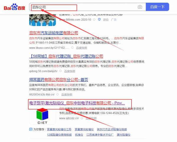 啟東中*電子科技有限公司關(guān)鍵詞排名最快上詞效果展示