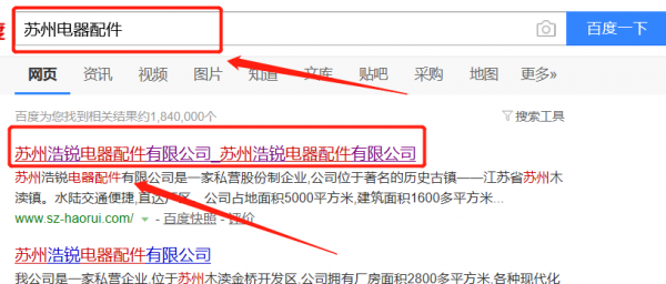 蘇州浩銳電器配件有限公司與我司簽下百度霸屏協議