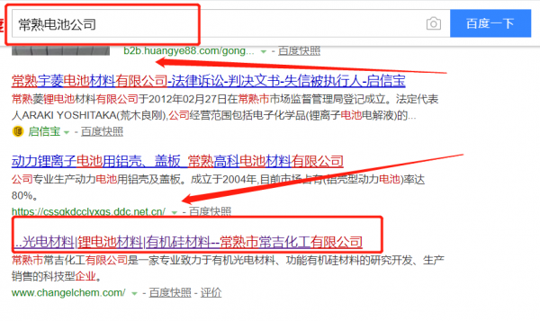 常熟市常吉化工有限公司選用我司企業(yè)電池行業(yè)的網(wǎng)站優(yōu)化產(chǎn)品,其SEO關鍵詞有電池。關鍵詞不限點擊次數(shù),大量搜索流量直達官網(wǎng);PC + 手機端搜索首頁自然排名,365天持效穩(wěn)定收錄。常熟市常吉化工有限公司成立于1992年,是經(jīng)常熟市市場監(jiān)督管理局審核的有資質(zhì)的公司,其統(tǒng)一社會信用代碼:913205811420917612。公司地址:江蘇省常熟市新材料產(chǎn)業(yè)園海平路30號。