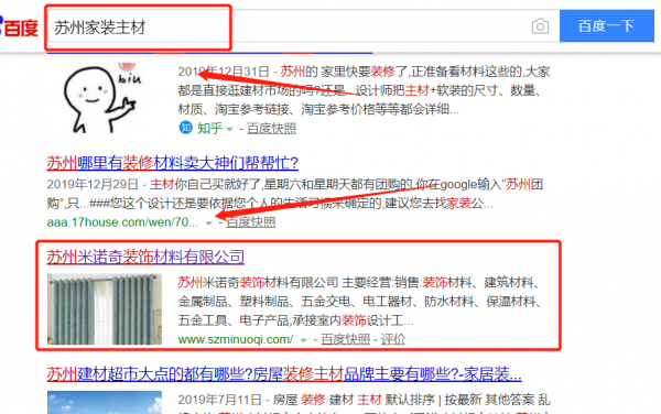 我們公司與蘇州米諾奇裝飾材料有限公司合作中,對這個公司所經營的家裝主材這個行業提供了關鍵詞搜索排名,與該公司的合作,更多的客戶讓我們公司為其提供關鍵詞搜索排名,通過每一次合作,我們公司不斷完善自己,同時希望合作伙伴在經營的路上越來越好。