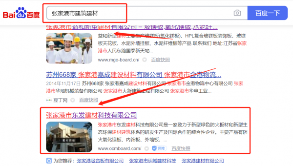 張家港市東*建材科技有限公司網絡推廣最快上詞效果展示