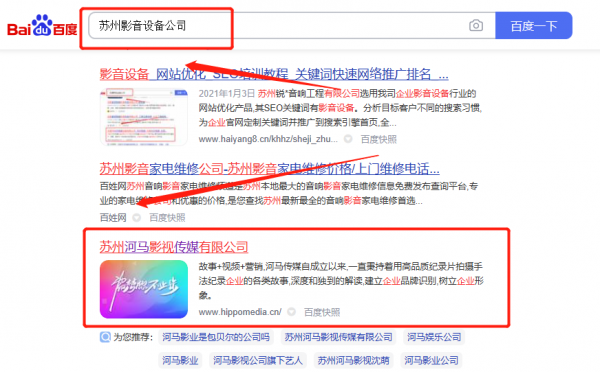 我們公司與蘇州河*影視傳媒有限公司合作中,對這個公司所經(jīng)營的影音設(shè)備這個行業(yè)提供了網(wǎng)絡營銷,與該公司的合作,更多的客戶讓我們公司為其提供關(guān)鍵詞搜索排名,通過每一次合作,我們公司不斷完善自己,同時希望合作伙伴在經(jīng)營的路上越來越好。