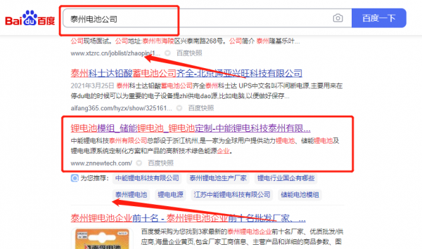 中*鋰電科技泰州有限公司關鍵詞排名最快上詞效果展示