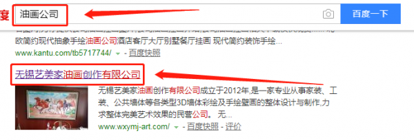 我們公司與無錫藝美家油畫創(chuàng)作有限公司合作中,對這個公司所經(jīng)營的油畫這個行業(yè)提供了關(guān)鍵詞搜索排名,與改公司的合作,更多的客戶讓我們公司為其提供關(guān)鍵詞搜索排名,通過每一次合作,我們公司不斷完善自己,同時希望合作伙伴在經(jīng)營的路上越來越好。