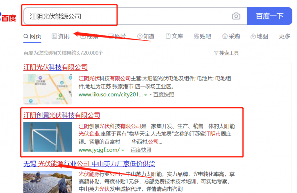 江陰*景光伏科技有限公司選用我司企業光伏能源行業的網站優化產品,其SEO關鍵詞有光伏能源。覆蓋國內幾大主流搜搜引擎,占領電腦端、手機端,24小時快速獲取關鍵詞排名,搶奪流量。江陰*景光伏科技有限公司成立于2010年,是經江陰市市場監督管理局審核的有資質的公司,其統一社會信用代碼:91320281**0240121N。公司地址:江蘇省江陰市周莊鎮宏昌路9號。