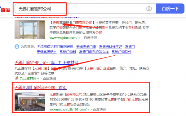 無錫*美門窗有限公司選用我司企業門窗型材的網站優化產品,其SEO關鍵詞有門窗型材。搶占百度、360搜索、搜狗等搜索引擎首頁自然排名(PC端 + 手機端),高客流量導入,SEO推廣效果更突出。無錫*美門窗有限公司成立于2015年,是經無錫市市場監督管理局審核的有資質的公司,其統一社會信用代碼:91320205**6529657C。公司地址:江蘇省無錫市錫山區東亭街道華夏中路18-5號。