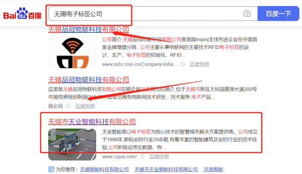 我們公司與無錫市*業智能科技有限公司合作中,對這個公司所經營的電子標簽這個行業提供了整站優化,與該公司的合作,更多的客戶讓我們公司為其提供百度快照排名,通過每一次合作,我們公司不斷完善自己,同時希望合作伙伴在經營的路上越來越好。