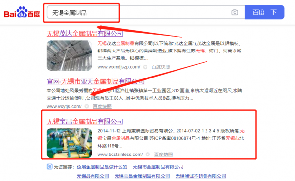 無錫寶*金屬制品有限公司關鍵詞排名案例欣賞