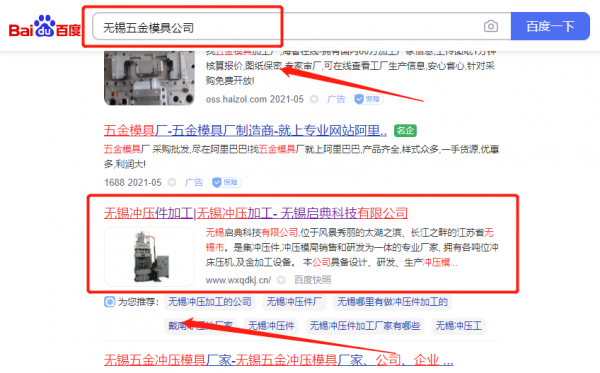 我們公司與無錫啟*科技有限公司合作中,對這個公司所經營的五金模具這個行業提供了網站推廣,與該公司的合作,更多的客戶讓我們公司為其提供快速排名,通過每一次合作,我們公司不斷完善自己,同時希望合作伙伴在經營的路上越來越好。