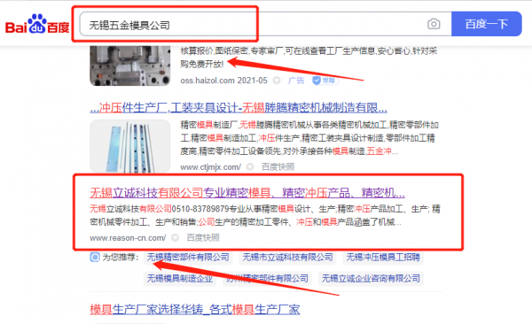 我們公司與無錫立*科技有限公司合作中,對這個公司所經營的五金模具這個行業提供了網站推廣,與該公司的合作,更多的客戶讓我們公司為其提供快速排名,通過每一次合作,我們公司不斷完善自己,同時希望合作伙伴在經營的路上越來越好。