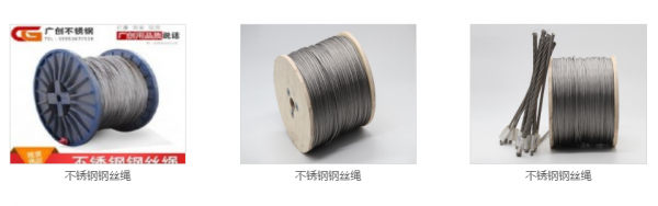 興化市廣創金屬制品有限公司,專業生產不銹鋼絲繩、涂塑尼龍鋼絲繩、隱形防護網用鋼絲繩、漁具繩、微型鋼絲繩以及鋼絲繩索具等。結構有單股繩( 1×7 、 1×12 、 1×19 、  1×37 等),多股繩( 6×7 、 7×7 、6×19 、 7×19 、 7×37 、 6W19 、 6X19+IWRC 等),最小直徑可做到 0.15mm 。廣泛用于鐵道電氣化、裝潢業、索具業、漁具業、汽摩車業等行業部門。公司集生產、銷售以及進出口貿易為一體,產品內銷全國各個省市,遠銷日本 北美 南美 西歐 東歐 東亞 東南亞 中東等國家和地區。