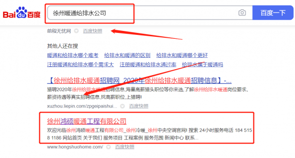 徐州鴻*暖通工程有限公司百度關(guān)鍵詞排名最快上詞效果展示