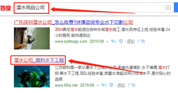 我們公司與江蘇順利水下工程有限公司合作中,對這個公司所經(jīng)營的潛水用品這個行業(yè)提供了SEO推廣,同時讓我們積累到更多的經(jīng)驗,與江蘇順利水下工程有限公司建立了友好的合作伙伴的關系,也提高了海洋網(wǎng)絡在同行業(yè)的知名度,提高了江蘇順利水下工程有限公司在同行業(yè)的知名度,發(fā)展越來越好。