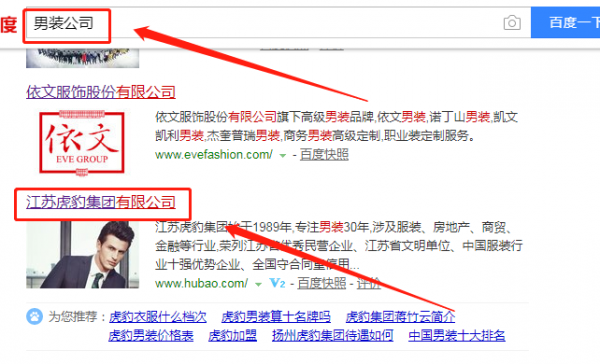我們公司與江蘇虎豹集團有限公司合作中,對這個公司所經營的男裝這個行業的SEO推廣積累了豐富的經驗;同時在該行業的SEO推廣等多元化的男裝領域中也有很多的成功的案例;但愿通過我們的合作,能夠幫助到合作伙伴在同行業中遙遙領先。