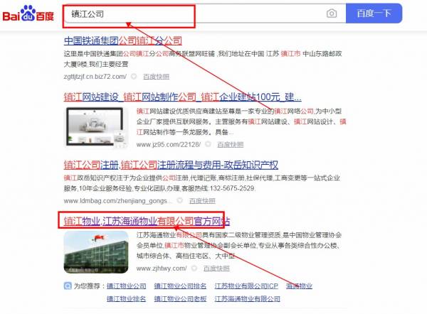 江蘇海*物業(yè)有限公司關(guān)鍵詞推廣排名效果展示