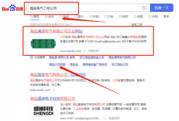 海鹽通*電氣有限公司百度關(guān)鍵詞排名讓網(wǎng)站輕松覆蓋在搜索引擎