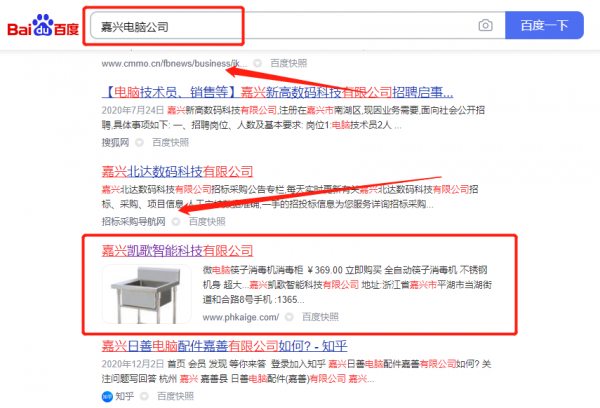 嘉興*智電子科技有限公司百度關鍵詞排名排名效果展示